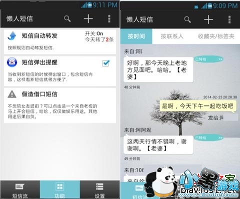 1》直观的浏览短信,也可以按照时间、联系人和标签来浏览