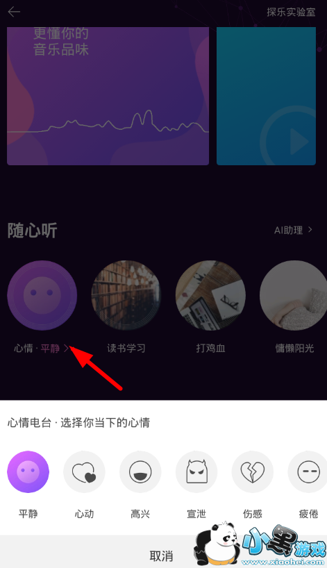 3、接下来还可以通过随心听功能,选择适合不同心情的音乐来进行收听,从而让ai更好的了解用户的喜好。