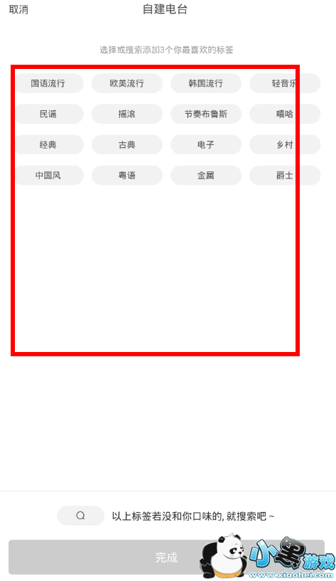 4、最后还可以直接通过下方选项来新建电台,选择不同的音乐风格来创建不同的电台,每个电台最多选择3个风格标签哦!