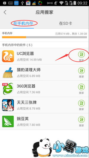 7、点击你要搬家的软件后面的“搬家”