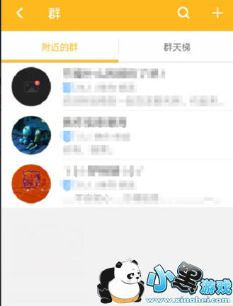 3.在其中的两个分格中,左边的是“附近的群”、右边的时“群天梯”,这里面的都可以通过点击来加。