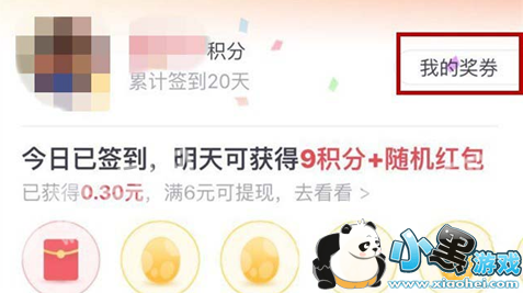 5、通过签到获得足够的提现金额后,点击“我的奖券”按钮。