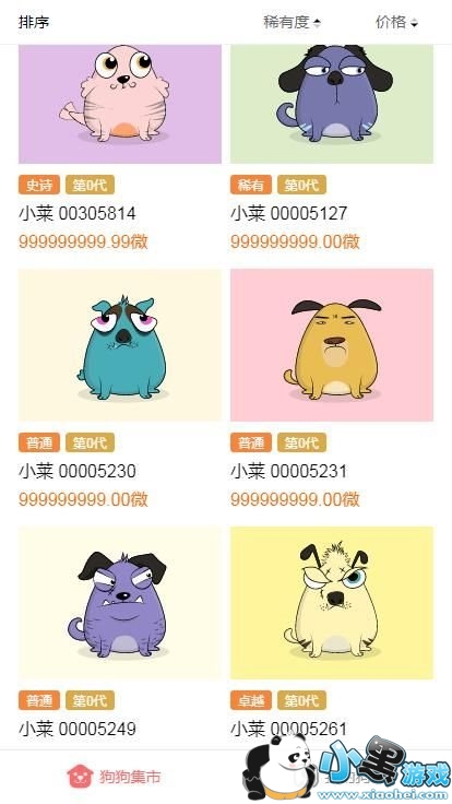 而且每只莱茨狗被系统冠以体型、花纹、眼睛、眼睛色、嘴巴、肚皮色、身体色、花纹色这8个外貌特征,每个特征有两种不同的属性:稀有属性和普通属性。这些属性组合起来,将会决定宠物狗最终的稀有等级,包括普通、稀有、卓越、史诗、神话。目前这个平台中并不能进化哟,用户可以一键在线购买和卖出。