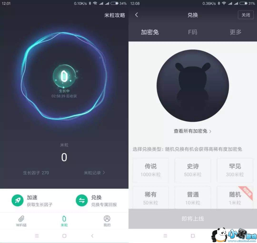 简单来说,手机连接 WiFi 后,用户就可以获得米粒,时间越长,获得的米粒越多,以后可以用来兑换加密兔、F 码等虚拟物品。