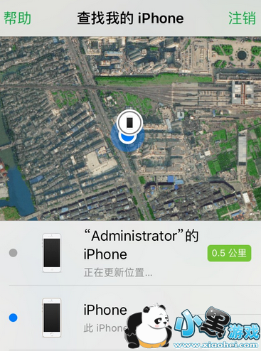 7.当手机定位成功后就可以看到地图上面显示两部苹果手机的定位位置。蓝色小点是目前个人所处在的苹果手机位置,另一个被定位的位置的苹果手机以iPhone图标显示出来。个人对定位进行比较了一下,苹果手机定位位置非常准确!
