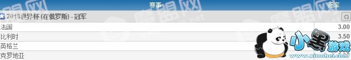 在1/4决赛全部结束后,四强全部诞生,而欧洲主流博彩公司也在第一时间更新了夺冠赔率。威廉希尔和BWIN都将法国视为夺冠头号热门,他们的赔率为3.00。排名第二的是英格兰,赔率为3.50。比利时名列第三,赔率为3.75。而克罗地亚名列四强末尾,威廉希尔给出的赔率是4.50,BWIN的赔率则达到5.00。