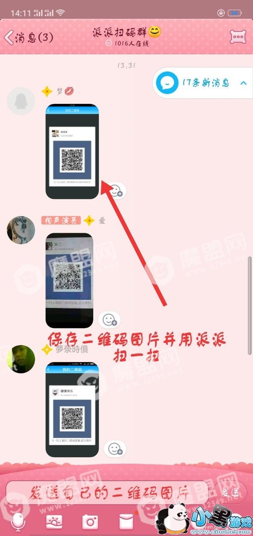 3、加群成功之后,发送自己的派派图片,或者保存并扫描其他人的派派图片: