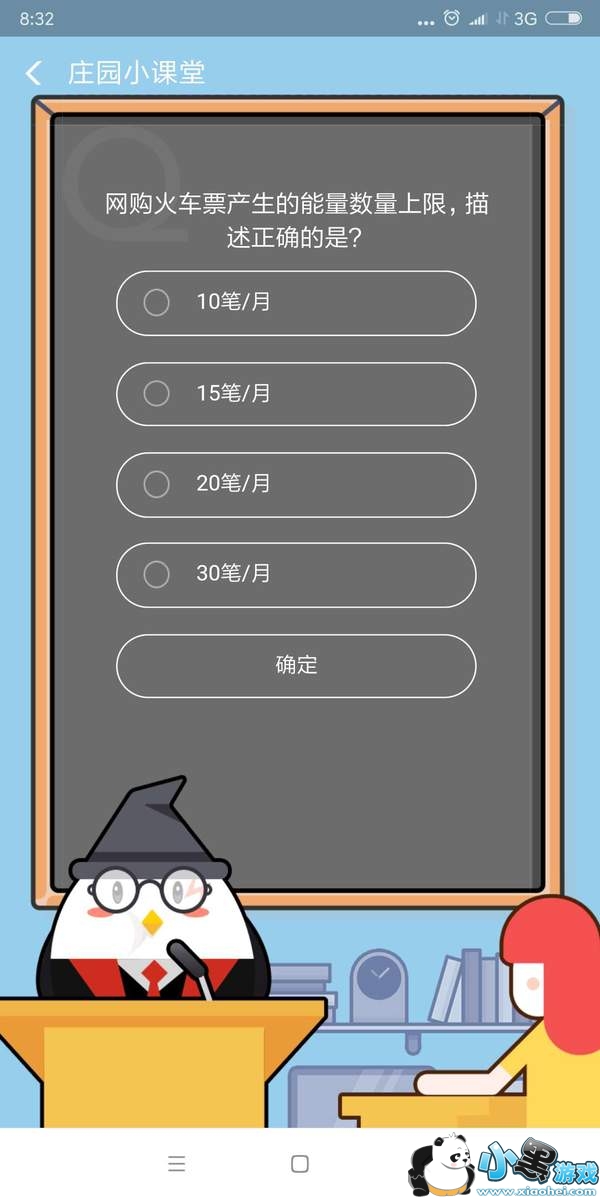 网购火车票产生的能量数量上限是多少?在今天的蚂蚁庄园小课堂中,新的问题相信很多小伙伴们其实不是非常了解吧,小编在此为大家准备好了正确答案,还在等什么,赶紧进来看看吧!