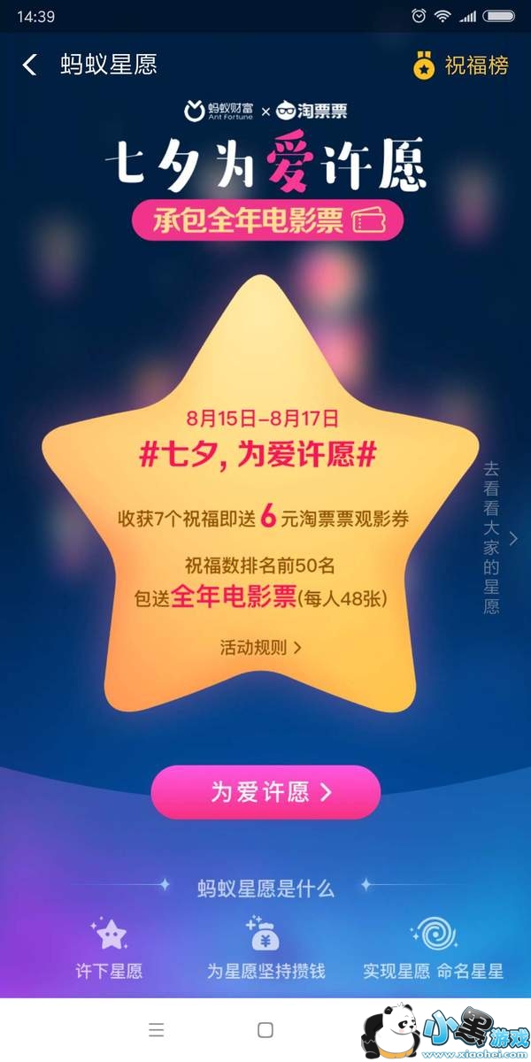 支付宝七夕为爱许愿活动在哪?最近蚂蚁财富联合淘票票推出了一个七夕为爱许愿活动,参与进来就由机会获得免费电影票哦,还是非常不错的在这个七夕时节,那么入口地址在哪呢,一起来看看吧!