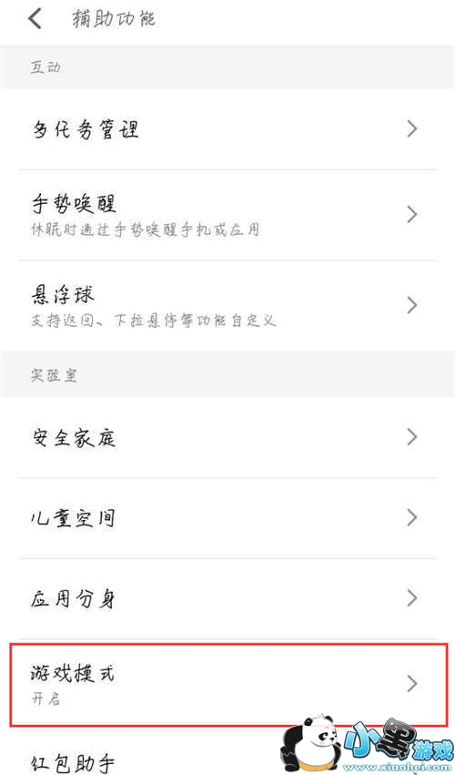 在辅助功能界面,我们接着操作,继续点击进入【游戏模式】