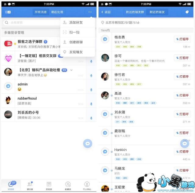 发布会上老罗展示了「附近的锤友」功能,实际测试后我们发现,锤子手机外的子弹短信用户是没这个功能的。仔细想想也对,一个iPhone用户安装了子弹短信,也不能称之为是锤友。