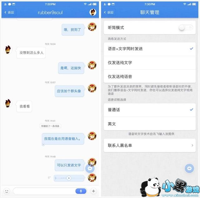 当然,你在设置中也可以将发送方式改变为「纯文字」或「纯语音」,这样在发送端你还是可以用任意方式输入,改变的是接收端的显示方式。