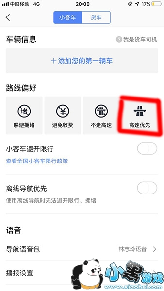 4、那么这里我们就可以看到“路线偏好”中的【高速优先】,点击高速优先图标变亮就说明设置成功了。