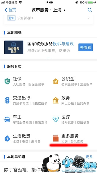 2、在城市服务首页中没有看到的话,可以点击【更多】查看