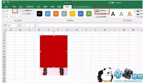 9、插入这个长方形要和证件照一样大小,然后填充长方形的颜色,你需要什么颜色的背景就填充什么颜色。