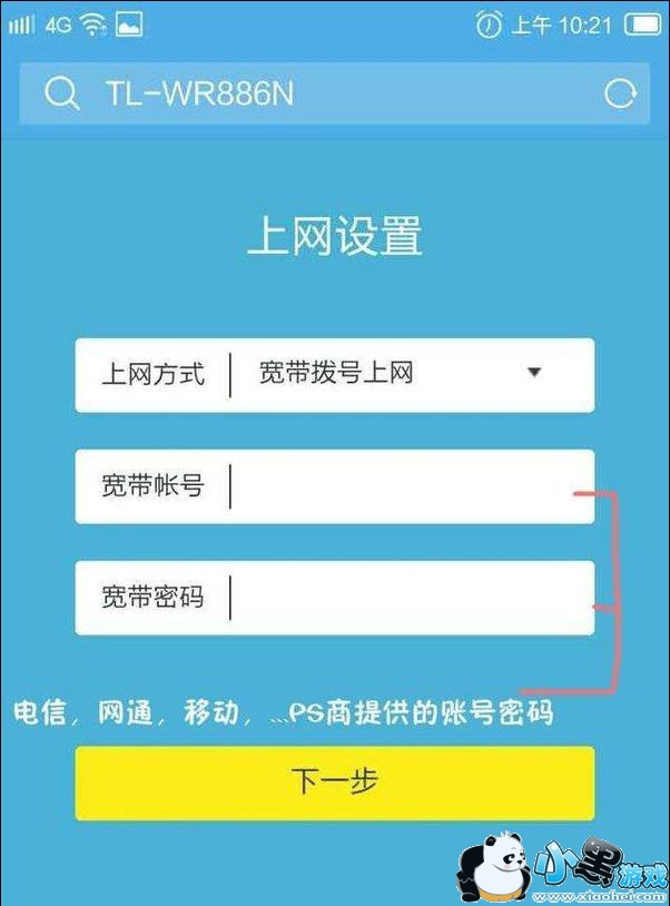 6、填写上网设置的相关信息,这里一点错都不能有,必须完全正确。