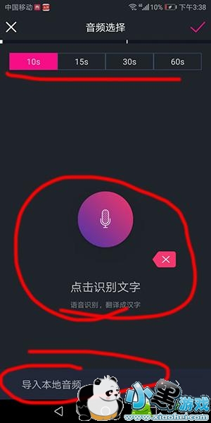 3、然后在这里可以直接录音,或者导入本地视频,上方也可以调节时间,制作完成之后点击右上角的“√”,然后系统将会自动处理。