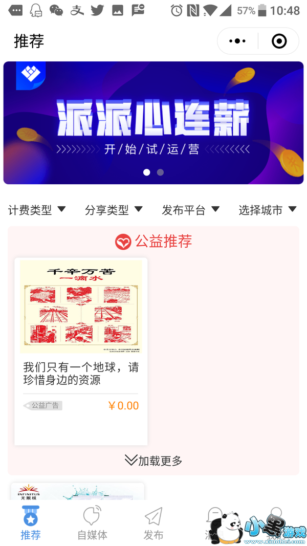 心连薪是浙江派金电子商务有限公司开发的一款新程序,是免费注册,帮助广告商发布推荐广告 而赚取佣金的平台。现在还没有正式上线,在12月中旬就可以正式发布广告任务。由于是免费注册,人人平等我的原则,所以广受大众喜爱! 没事拿起手机发布一条广告就可以赚取3元的费用。