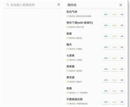 它同样支持下载ape,flac无损品质的音乐,它的整体设计也是十分简洁,并且软件使用方法很简单,直接点击软件主界面的搜索按钮,然后输入你要下载的歌曲或者歌手,就可以出来结果。