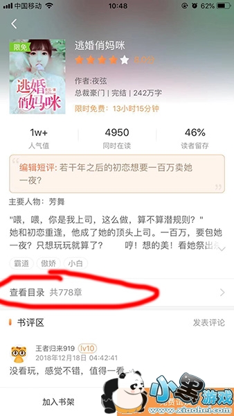 1、任意选择一款小说,在小说的简介下方就可以直接查看目录了。
