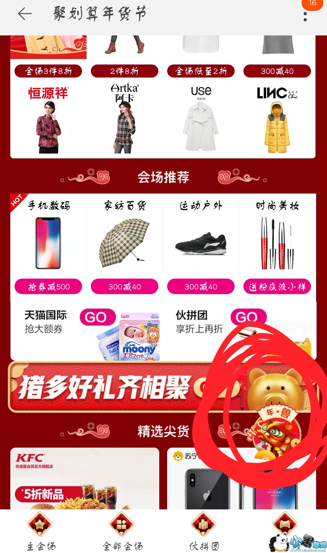 3、进入“聚划算年货节”浏览商品,右下角会时不时的出现“年兽”。抓住年兽进入游戏界面,玩游戏不仅可以获得福气还可以获得品牌半价大额优惠券哦~