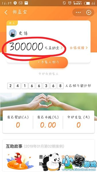 3、进入相互宝界面,点击300000保障金,如下图所示