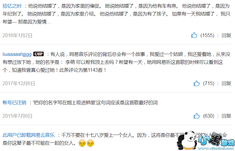 “有人说,网易音乐评论的背后总会有一个故事,我爱过一个姑娘,我还爱着她,从来没有想过放下她,她的名字是: 李萌 可以帮我顶上去吗?希望有一天,她用网易听这首歌的时候可以看到这个,知道我曾真心爱过她!此条评论为第1143首!”