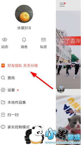 1、现在想参加快手的“邀好友得现金”活动,新用户可以直接通过下方的链接访问活动页面:点击此处,或者通过快手主页左上角的按钮打开个人列表,找到“好友组队 天天分钱”的入口。