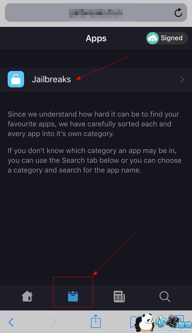 二、进入到网页之后,我们切换至“Apps”选项卡,在下方点击选择“rootlessJB”,安装这个描述文件,如下图所示。