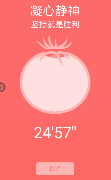 3、“番茄计时”会为用户提供默认25分钟的倒计时,时间一到就会提醒用户学习结束,该转移注意力放松一下精神,恢复自己的状态!