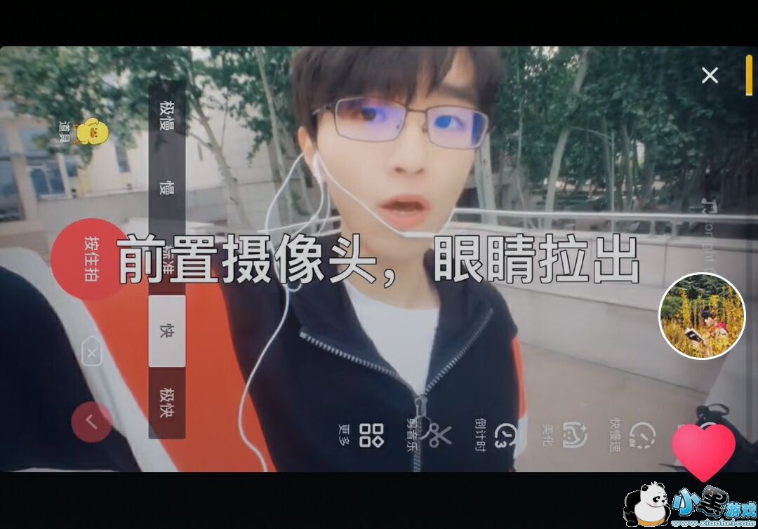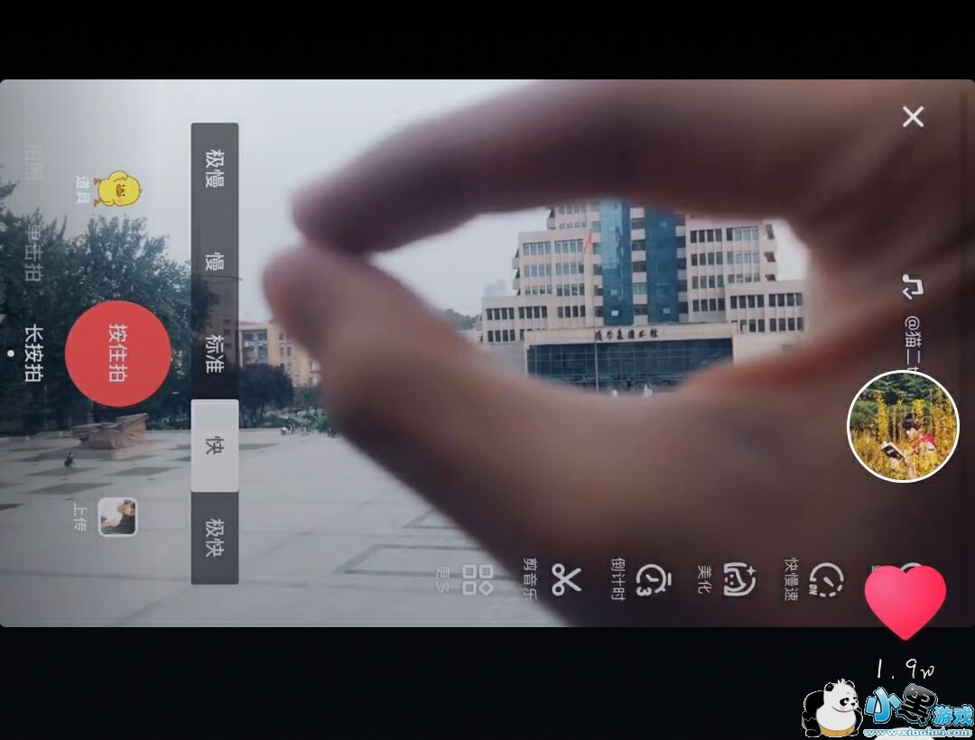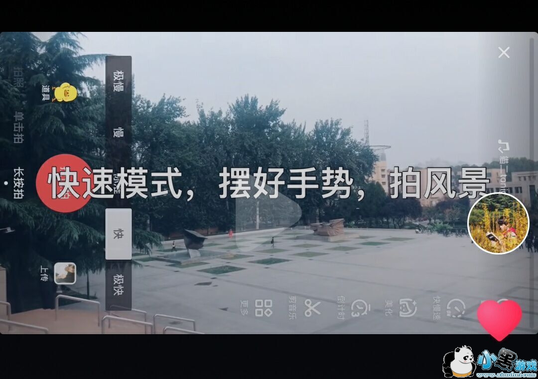 1、打开抖音拍摄视频的界面,快速模式,摆好手势,拍风景。