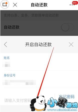 点击同意之后,会弹出你的个人信息,这时需要填写你的京东账户支付密码,填写完成之后点击“确认开启”这样自动还款就开启成功了。