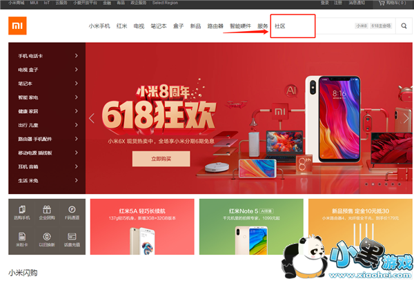 1、打开小米官方网站,点击【社区】。