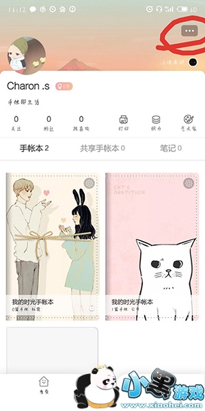 1、打开时光手账APP,点击“我的”,进入我的页面,再点击右上角的“...”符号。