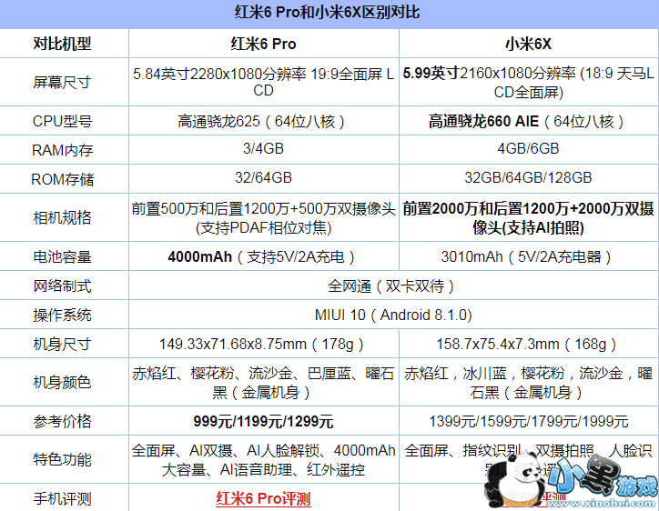 以上就是小编整理的小米6x和红米6pro哪个好的相关信息,更多精彩资讯欢迎手机收藏关注小黑市场。