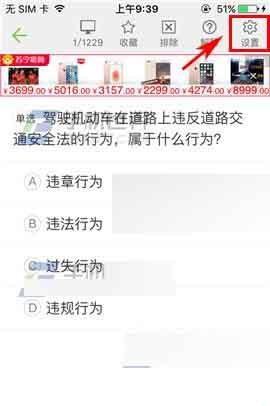 1、首先打开APP,点击练习题,点击右上角的【设置】。