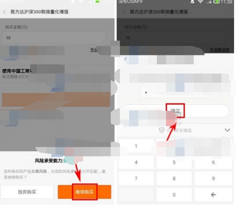2、接受风险承受度测试后【继续购买】,输入支付密码点击【确定】就可以了。