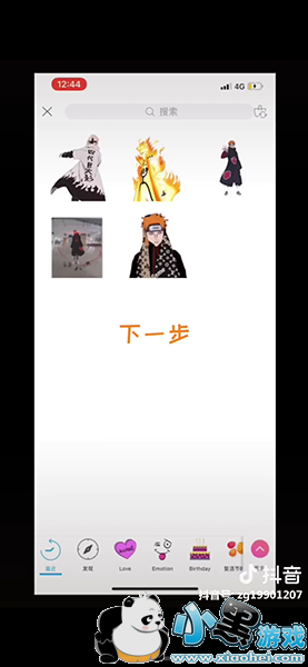 3.然后再美易APP里面搜索火影忍者,选者与图片一直动作的贴纸。软件下载:picsart美易