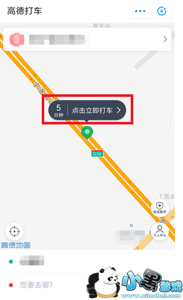 输入验证码,就会进入高德打车的地图首页,点击屏幕上的【点击立即打车】按钮。