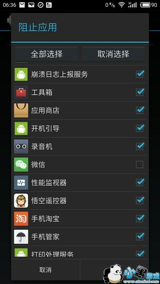 选择“全部选择”,再一次找到“微信”取消钩钩,点击完成。如图: