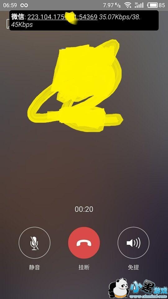 9.我们打开微信,选择“语音聊天”,稍等一会后上方出现的唯一IP地址,而且IP地址后面是一个随机的5位端口号。如图: