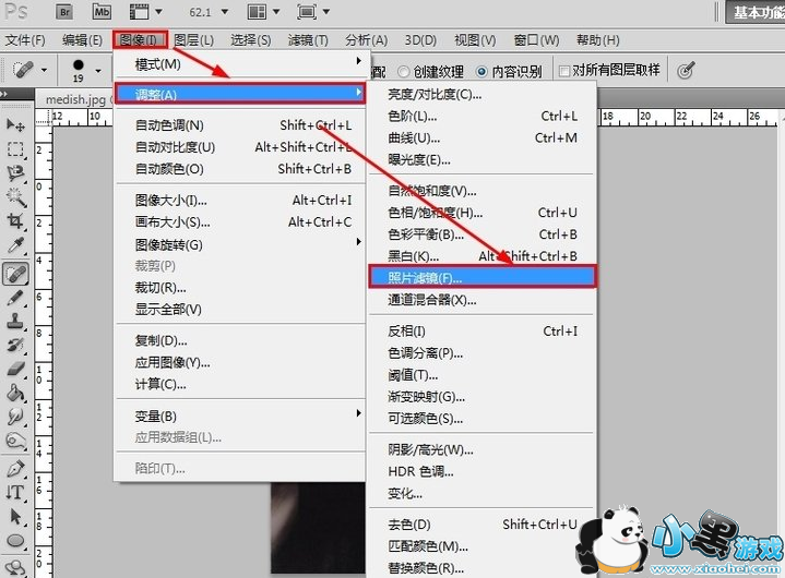 5、磨皮结束后,可细节处理照片,即可使用污点修补工具或者仿制图章工具进行照片局部的修理已达完善。如果认为照片处理过渡,比方说皮肤过白过亮有点假,此时可以使用照片滤镜。图像→调整→照片滤镜进行适当滤色即可。
