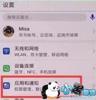 2、进入设置页面后,找到并点击【应用和通知】。