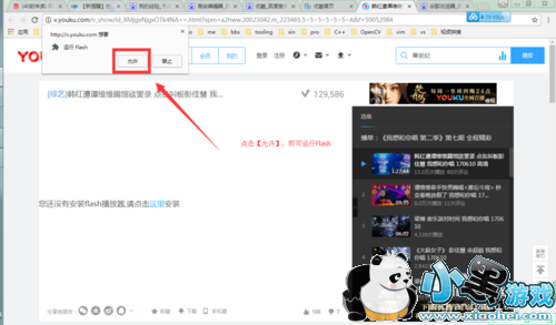 根据上面的提示,我们点击【允许】按钮,也是可以启动Flash插件的,但是每次都这样做,会浪费时间,更重要的是会影响心情-_-!