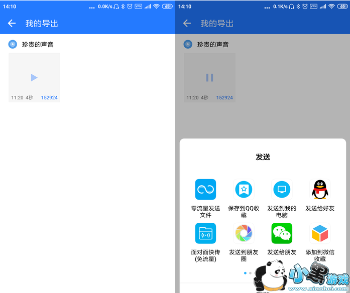 点击微痕迹APP上方的“我的导出”按钮,就可以找到刚刚导出的语音文件了。这时候你可以试听,选中后这可以直接发送到各种地方,转发自然不成问题。此时此刻,不但微信QQ语音能够在本来的APP当中转发,还可以跨APP转发。而且转发后,所显示的形式和原生发送的语音信息不同,无需担心辨认不出这是一条转发过的语音,受骗概率大大降低。