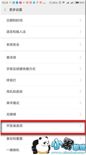 (1)打开设置——>点开”开发者选项“——>将”USB调试打开“,如图: