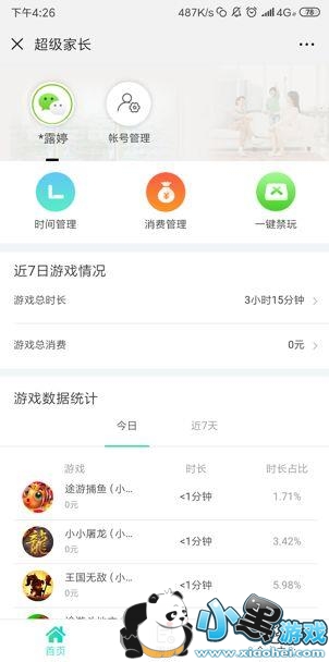 家长可在超级家长中设置游戏时长、时段或“一键禁玩”