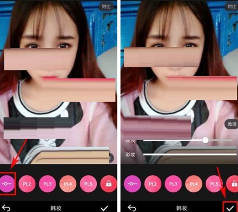 3、点击自己喜欢的【颜色】,上好妆后点击右下角的【√】即可保存。