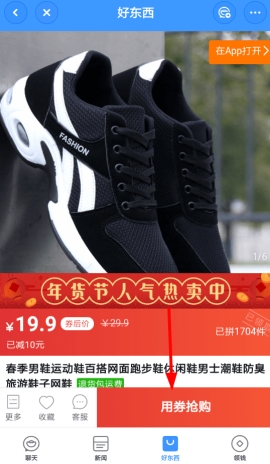 2、选择右下角的“用券抢购”按钮,可以选择商品类型。