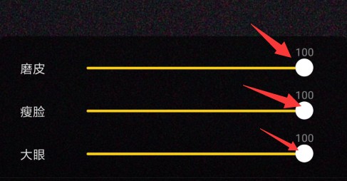 6.也可以点击美颜美颜效果,快速的方法就是将三个选项全部调到100就可以了。